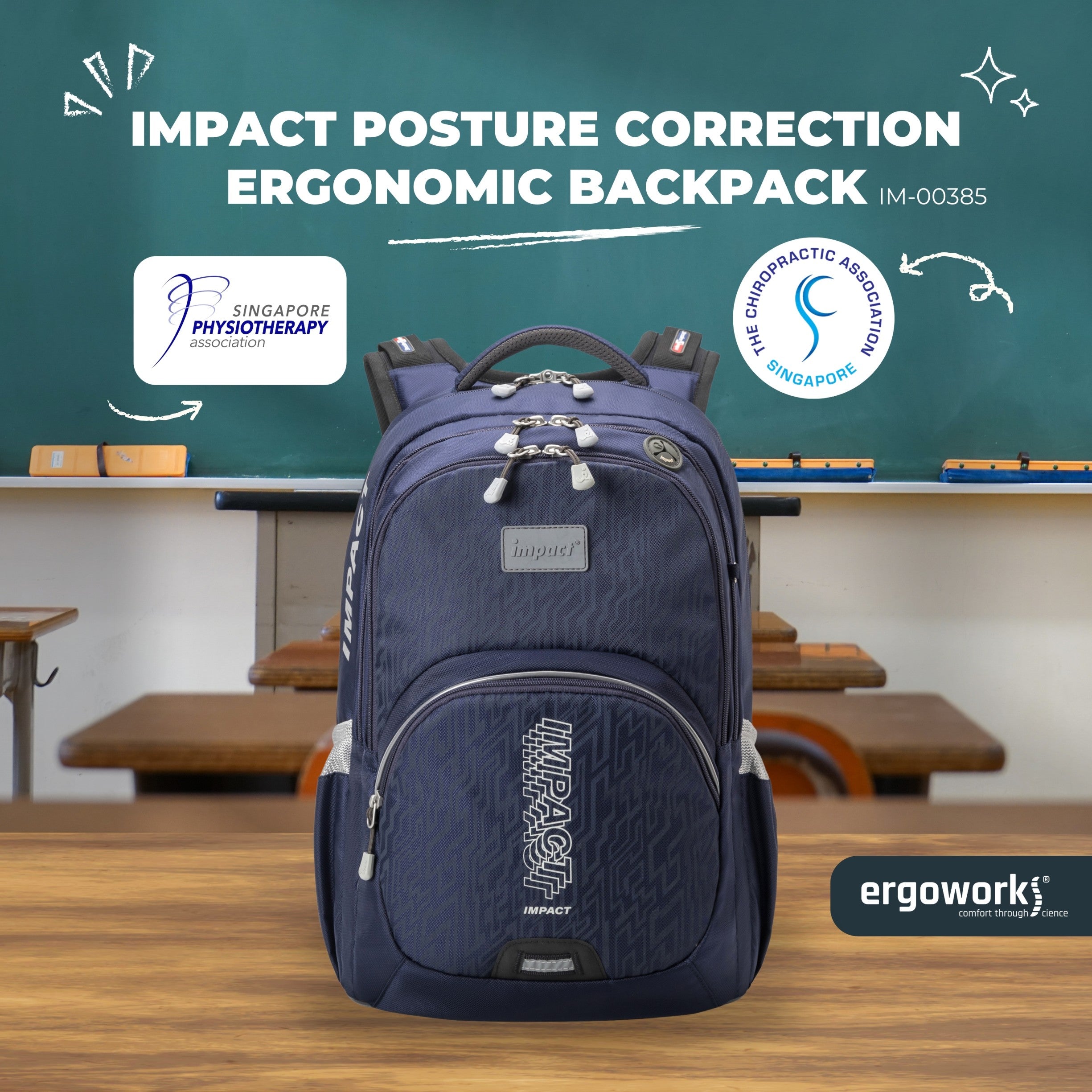 IMPACT Spinal Protection Backpack promotes better posture for your child and spinal health, truly the perfect companion to all students. IMPACT is the ONLY ergonomic brand internationally endorsed and recommended by Singapore Physiotherapy Association and The Chiropractic Association (Singapore).