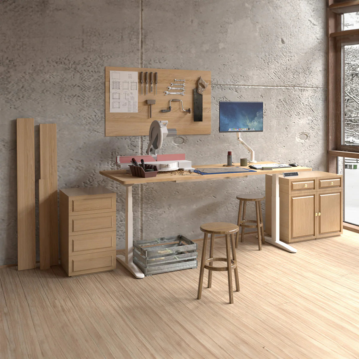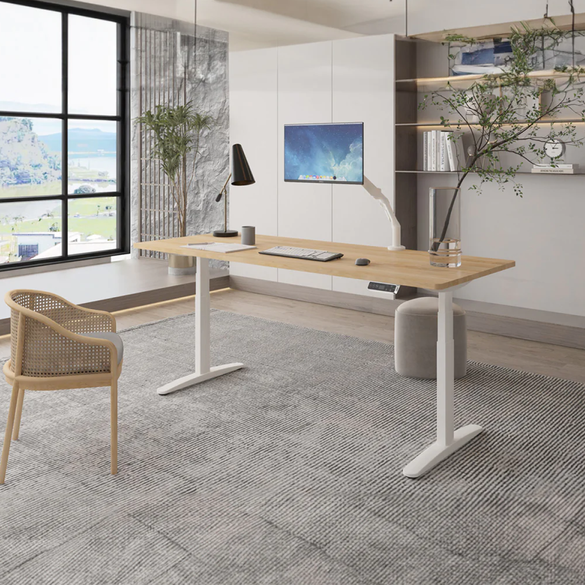 Introducing the ultimate ergonomic desk that combines functionality with style. The Dual Motor height adjustment system ensures smooth and effortless transitions, allowing you to easily switch between sitting and standing positions without any noise disturbance.